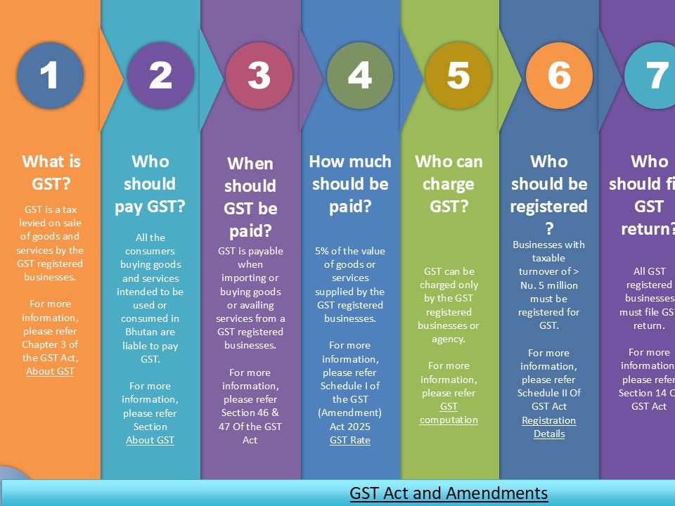 - Any business with an annual turnover of Nu. 5 million or more must register for GST.